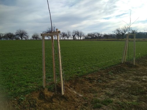 A tak to Pavel objednal, Roman přivezl, Robert a Ladík vykopali, Josef zasadil, Marek pomohl, a všichni poté společnými silami zabezpečili stromky proti zvěři. Nyní doufejme, že se novým stromkům bude dařit, aby bylo možné pokračovat v další výsadbě.